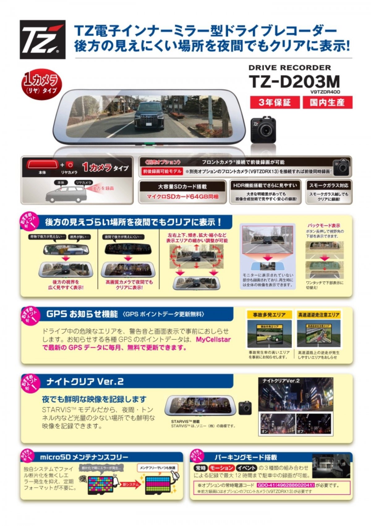 まず最初は、TZーD201の前後録画が可能なコンパクトモデルのフロントドラレコです!