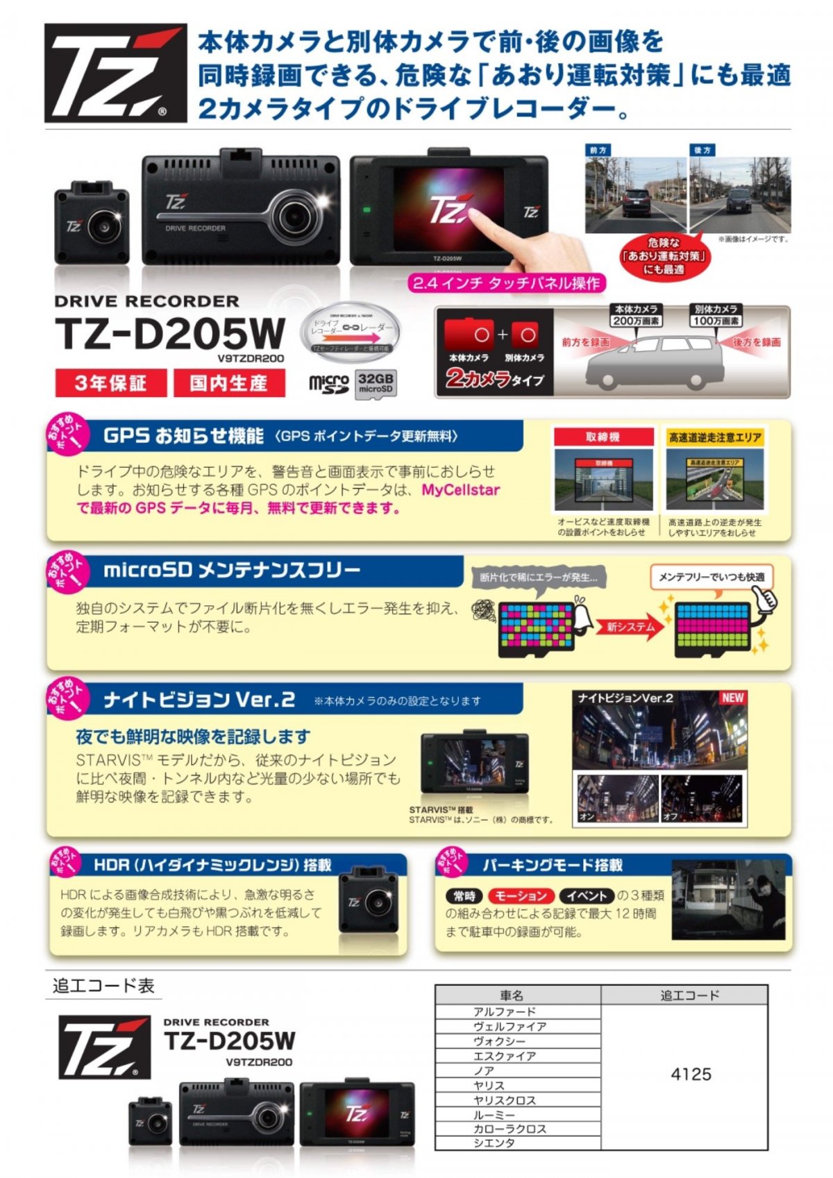 次は、今では当たり前になっている前後ドラレコで、TZーD205Wです!