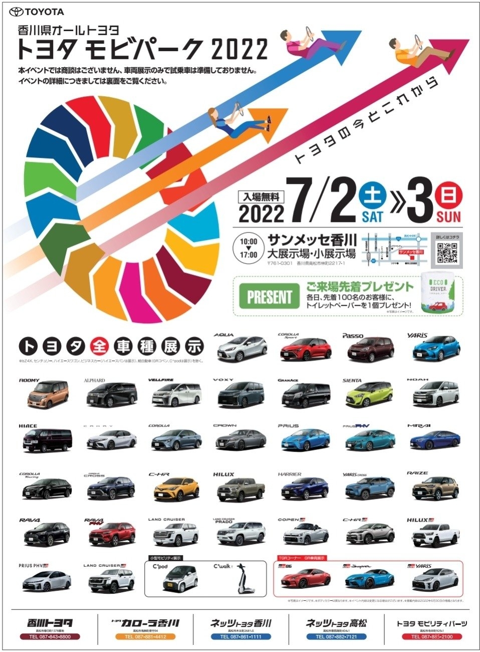 7月2日(土)、3日(日)は3年ぶりに香川県オールトヨタが開催されますよ━━━━(゚∀゚)━━━━!!