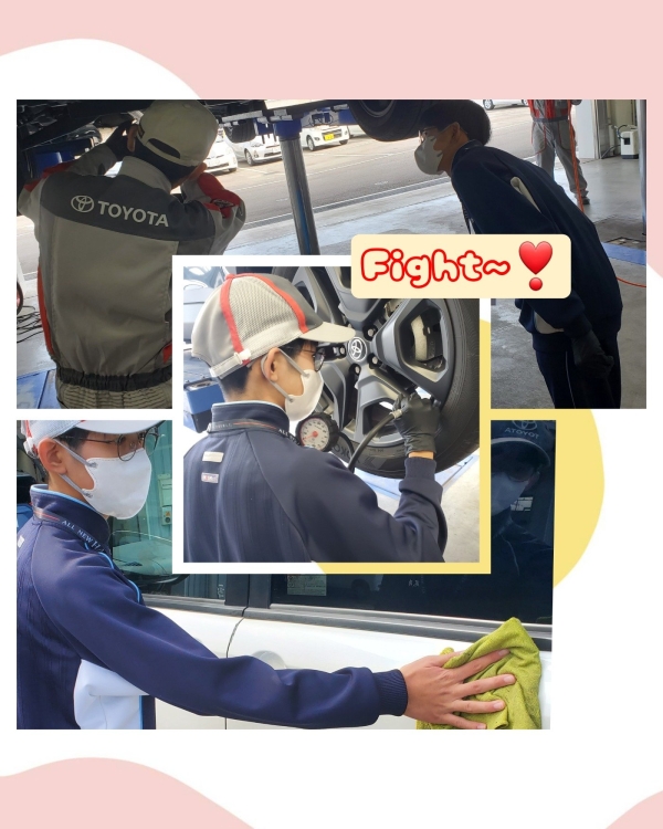 洗車の拭き上げやショールームで接客対応にチャレンジしてもらいました(●ゝω・)