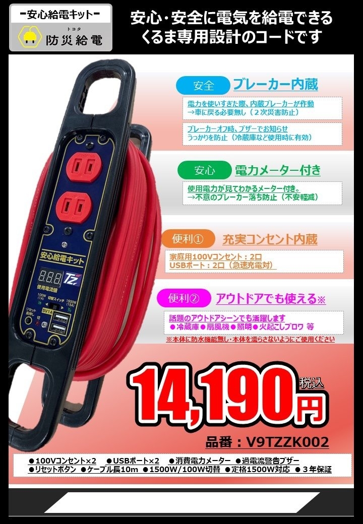 いざという時に車が1500Wの電源になるのはとっても心強いですよね(●´ー`●)