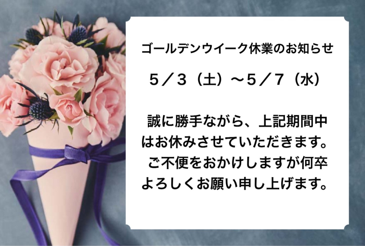 2025年04月29日 ゴールデンウイーク休業のお知らせ いつもご利用いただきありがとうございます。 誠に勝手ながら、5/3(土)~5/7(水)の期間は、お休みさせていただきます。 ご不便をおかけしますが、何卒よろしくお願い申し上げます。 尚、事故・故障でお困りの際は、JAFまたはご加入中の任意保険ロードサービスをご利用ください。 JAF連絡先 ナビダイアル:0570-00-8139