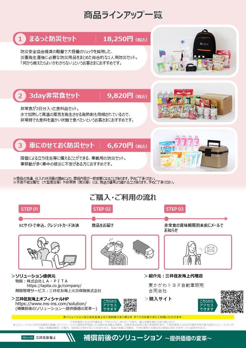 今回ご紹介する「防災グッズ」は、三井住友海上火災保険〈補償前後のソリューション〉の商品です。
