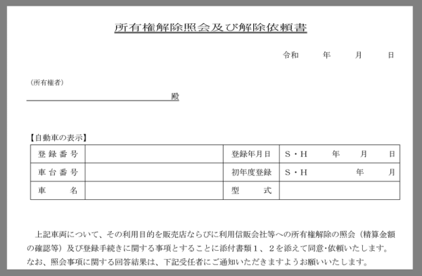● 所有権解除依頼書 <下記よりダウンロードしてご使用ください。>