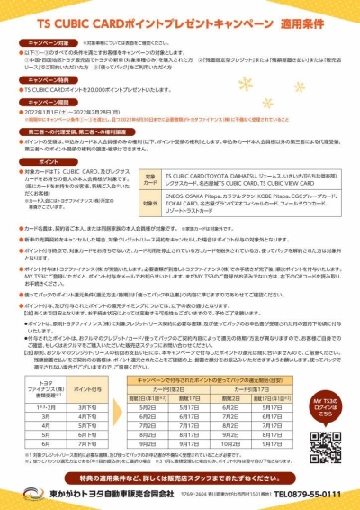 トヨタのカード(TS CUBIC CARD)でお得なキャンペーンのお知らせです。